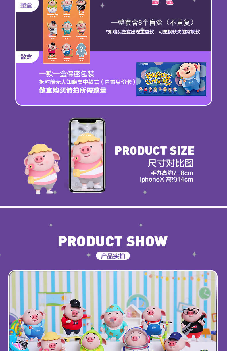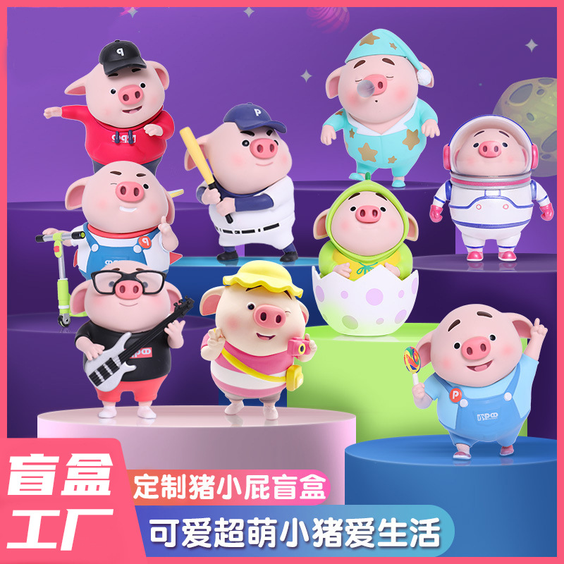 豬小屁盲盒定制 pvc吉祥物公仔定做