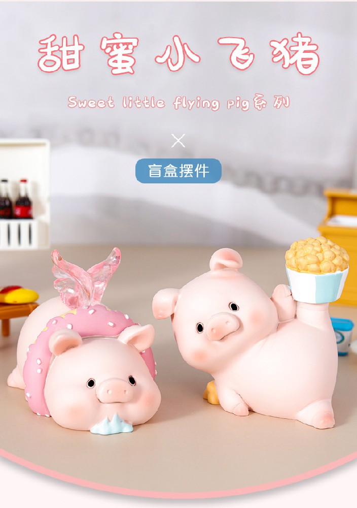 甜蜜小飛豬盲盒公仔定制 樹脂卡通公仔擺件做