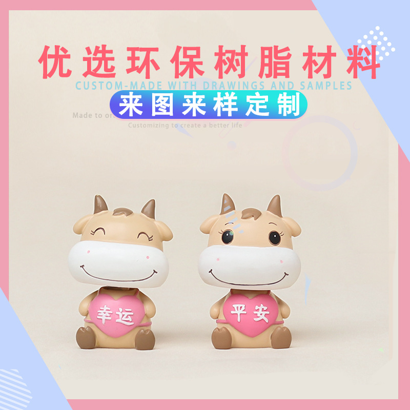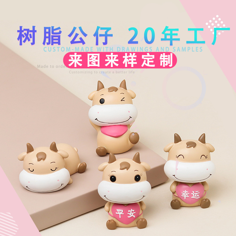 可愛卡通牛吉祥物定制 牛年樹脂擺件