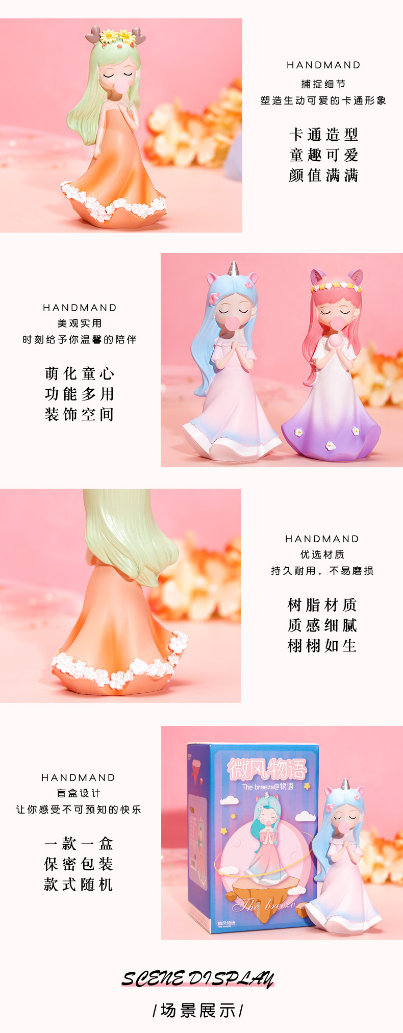 卡通女孩盲盒公仔定制 樹脂盲盒公仔生產廠家